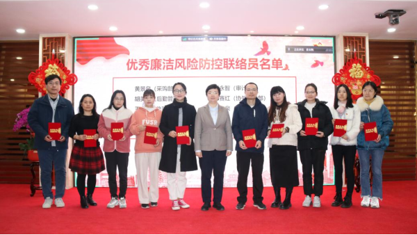 公司紀委書記李玉婷向2023年度優秀廉潔風險防控聯絡員頒獎