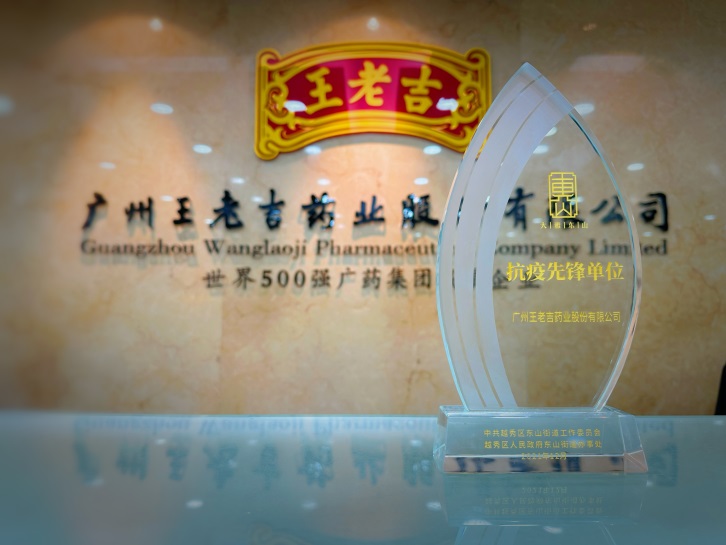 3月22日,廣州市越秀區東山街五羊北社區葉艷主任代表越秀區東山街道滿懷感恩之情來到廣州王老吉藥業股份有限公司營銷中心,為王老吉藥業頒發 “抗疫先鋒單位”獎杯。