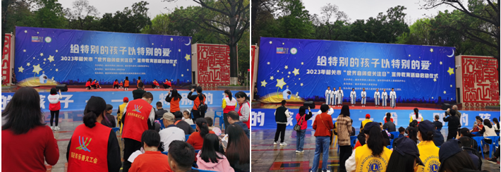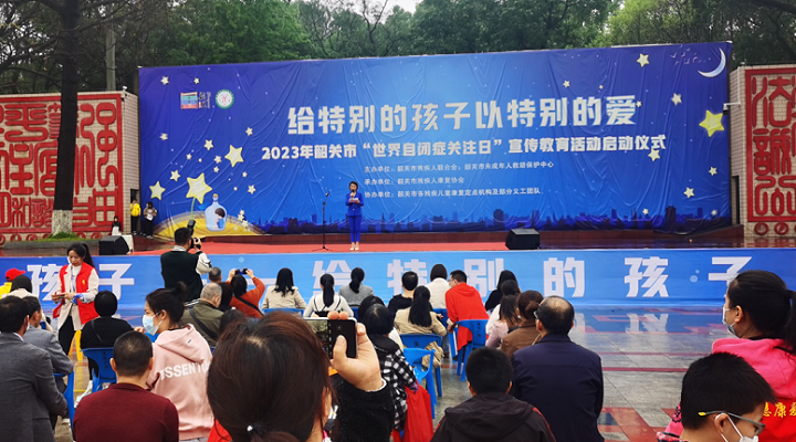 這天,在韶關(guān)市中山公園,開啟“走近星星的孩子—給特別的孩子以特別的愛” 2023年韶關(guān)市“世界自閉癥關(guān)注日”宣傳教育活動啟動儀式,現(xiàn)場有自閉癥兒童表演節(jié)目、現(xiàn)場派發(fā)藍絲帶、及自閉癥康復(fù)治療宣傳等相關(guān)活動、游戲。