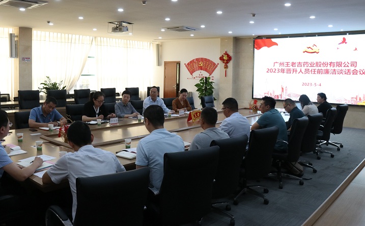5月4日,王老吉藥業組織召開2023年晉升人員任前廉潔談話會議,公司黨委書記陳偉平,黨委副書記、工會主席何毅,紀委書記李玉婷對2023年上半年12名新晉升人員進行任前廉潔談話,公司人力資源部及紀委辦工作人員列席會議。