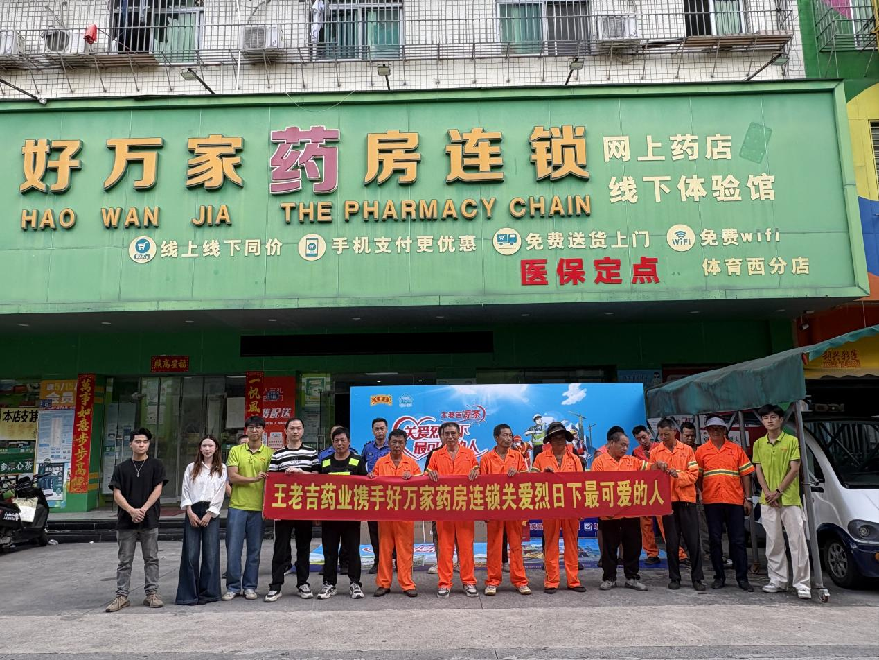 廣州王老吉藥業攜手好萬家藥房連鎖有限公司、檸萌探店團,在好萬家藥房連鎖體育西分店前開展了“關愛烈日下最可愛的人”公益活動,為一線環衛工人送上裝滿廣東涼茶顆粒的愛心禮包,用實際行動傳遞社會溫情。