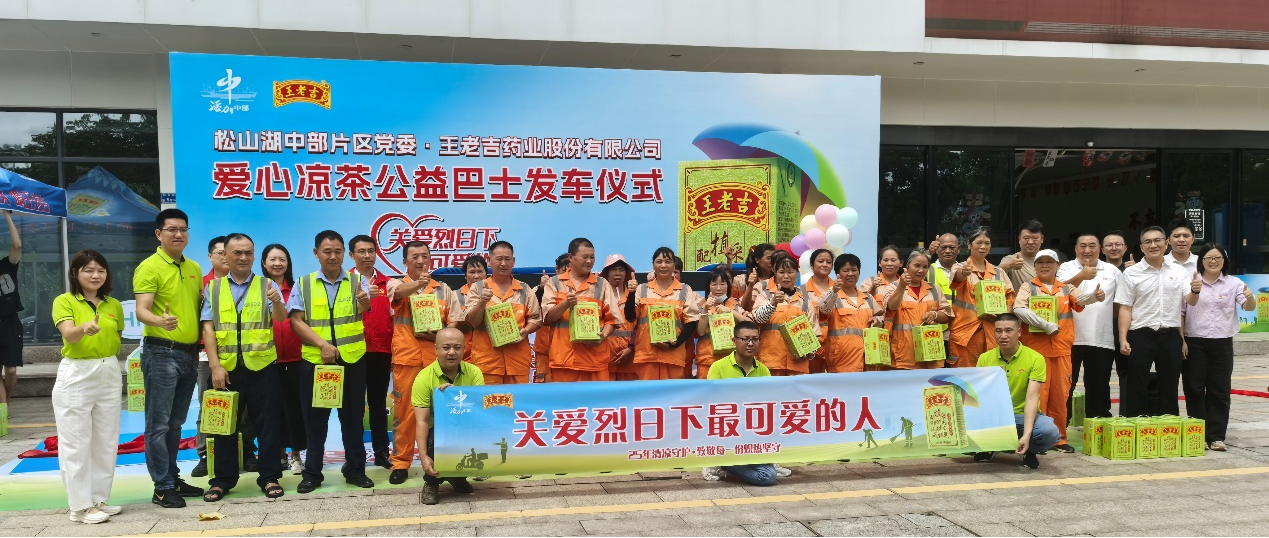 7月22日大暑當天,百年涼茶品牌王老吉攜手松山湖中部片區黨委,正式啟動了"關愛烈日下最可愛的人"公益巴士項目,為堅守在高溫一線的戶外工作者和市民送去清涼關懷。 -