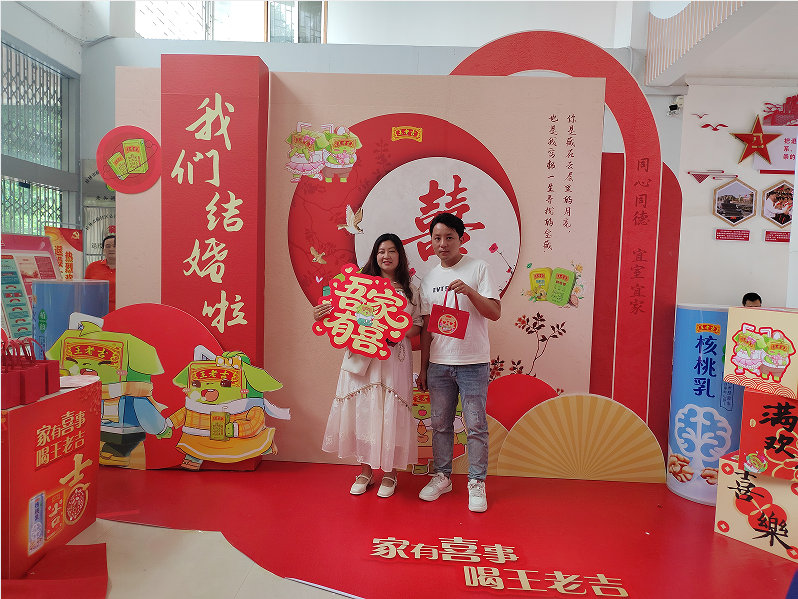 5月20日,臨桂區民政局婚姻登記處洋溢著幸福與喜悅,140多對新人在這里喜結連理,而王老吉精心打的“吉慶打卡點”和暖心禮品,更為新人們的領證儀式增添了別樣的儀式感。 -