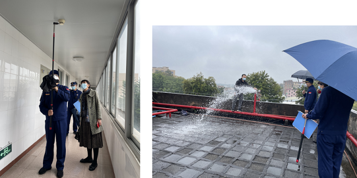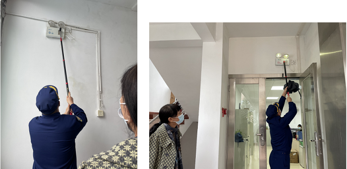 3. 抽查科研樓應(yīng)急燈、感煙探測器的運行情況,還做了消防未端試水測試。