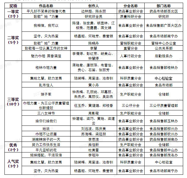 2月14日至2月28日,工會(huì)舉辦主題為“創(chuàng)新提效?巾幗力量”的三八婦女節(jié)短視頻比賽。共收到參賽作品33個(gè)。視頻作品以公司女職工工作崗位、工作內(nèi)容、工作場(chǎng)景為主要內(nèi)容,貼合活動(dòng)主題,體現(xiàn)王老吉藥業(yè)女職工的巾幗精神,表達(dá)的思想積極健康、表現(xiàn)力強(qiáng)、真實(shí)發(fā)生、情感真摯。通過(guò)評(píng)比和網(wǎng)上投票,在三八當(dāng)天中午公布了評(píng)比結(jié)果,共評(píng)出獲獎(jiǎng)作品22個(gè),其中一等獎(jiǎng)2個(gè)、二等獎(jiǎng)5個(gè)、三等獎(jiǎng)10個(gè)、優(yōu)秀獎(jiǎng)2個(gè)、人氣獎(jiǎng)3個(gè)。