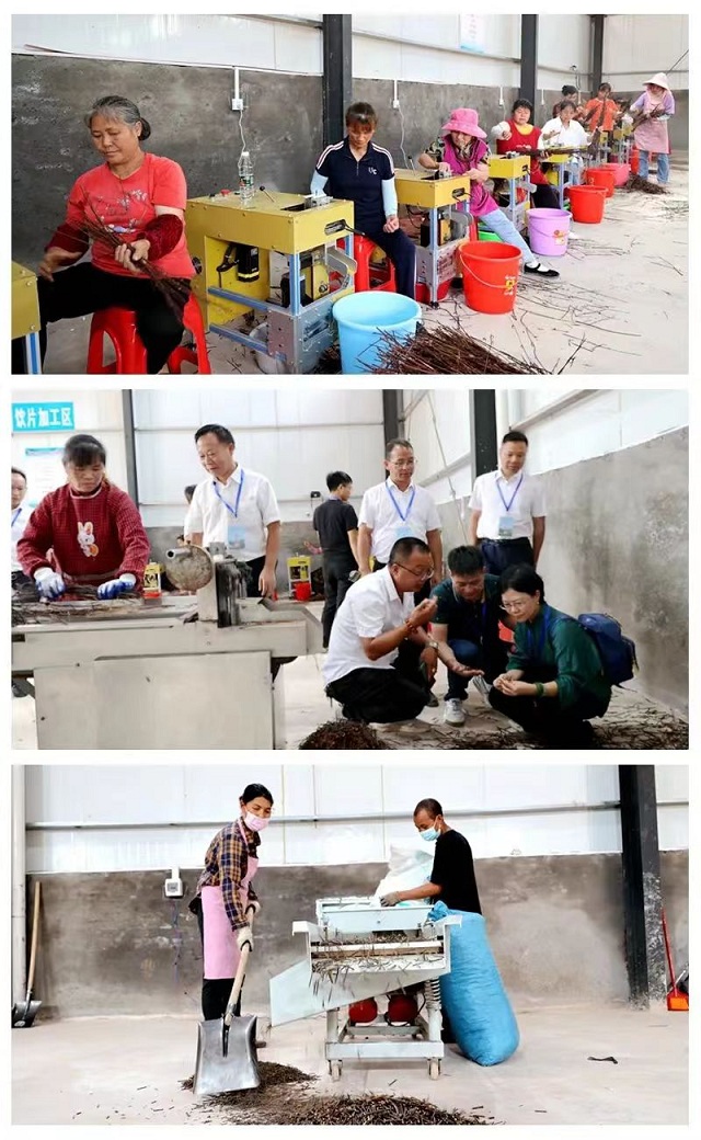 掛牌儀式結束后,當地政府組織參會嘉賓參觀鉤藤加工、倉儲集散中心。在生產車間,清洗、烘烤、切割、篩選等新設備先后啟動,一條標準化中藥材加工、倉儲生產線正式投入使用,科學合理的生產線保障了鉤藤的質量。 參觀加工、倉儲中心 隨后,王老吉公司人員與通道縣政府、有田公司相關人員一起來到種植基地考察鉤藤及淡竹葉的種植生長情況,探討如何硬件及軟件兩手抓,做好基地建設,提升藥材質量及產量,為公司大品種發展注入源源動力。 鉤藤、淡竹葉種植基地 中藥材基地掛牌及考察活動結束后,在黃曉丹總工程師的帶領下,王老吉公司一行利用工作中的空閑時間來到紅色教育基地通道轉兵紀念館參觀。 通道縣是著名的紅色革命基地,當年中央紅軍在長征途中面對危機四伏的局面,在此地臨時召開了“通道會議”,決定轉向敵人較為薄弱的貴州省進軍,這一決策在危急關頭挽救了紅軍,為遵義會議創造了前提條件,同時為確立毛澤東同志在黨內和紅軍內的核心領導地位奠定了最初的基礎。80多年過去了,國家發展強大、人民勤勞勇敢,此方紅色熱土也發生了翻天巨變,現在的通道生態秀美,資源豐富,人杰地靈。