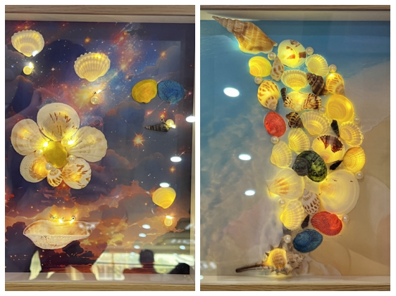 活動開始前,培訓老師、助教和工會工作人員現場為職工準備了貝殼、相框、底板、燈串等等材料。活動開始,老師詳細講解了貝殼燈畫的制作方法。從畫面的構思、粘貼貝殼的方法到打孔串燈的技巧,每一個步驟老師一邊操作演示一邊解答疑問。隨后職工們充分發揮自己的想象力,先用貝殼擺放出燈畫造型的,再照流程和步驟,在老師的指導下,制作出了屬于自己獨特的貝殼燈畫。活動最后,職工們紛紛拿出來自己的作品,現場參加“最優作品”評比大賽,經過培訓老師的專業評審,其中11個作品脫穎而出,獲得了“2023年王老吉藥業工會貝殼燈畫制作賽最優作品”獎。