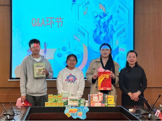 在宣講會的互動環節,同學們就自己所關心的公司發展平臺、崗位需求等問題與參會領導進行了互動交流人力資源部林華梅副總監就宣講的內容對同學進行了提問,回答正確的同學將獲得盲盒獎品并由何書記親自送出對互動環節積極提問的同學也準備了特別禮品,現場氛圍熱烈高漲。